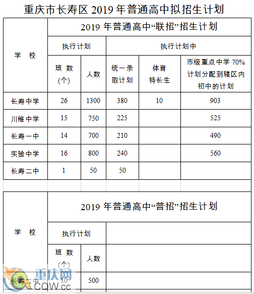 重慶市長壽區2019年普通高中擬招生計劃重慶市長壽區2019年普通高中擬招生計劃