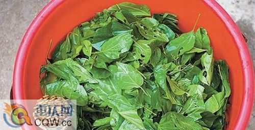 第一步:采摘斑鳩柞葉子。清晨采摘最佳,盡量選葉厚新鮮的樹葉,一般來說三四斤葉子可做成兩盆豆腐。