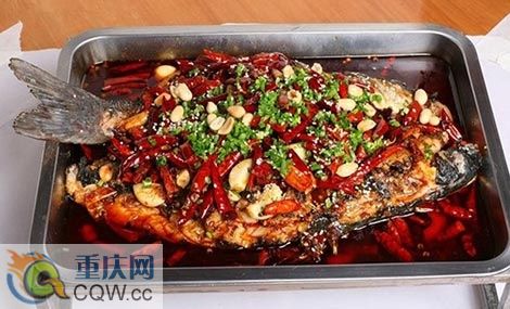 萬州烤魚是屬于重慶特色傳統名菜,屬于渝菜系。萬州烤魚把魚剖洗凈后平放在鐵夾中,放在爐上用木炭燒烤,盛到專用鐵盤中,澆上用牛油、紅油、白糖、花椒、辣椒等調味品炒出底料,放上西芹、豆芽等爽口菜。口味咸辣。萬州烤魚采用“先烤后燉”的獨特做法,融合了烤、燉兩種烹飪工藝的精華。據說川式烤魚的由來是從非洲傳來的,一名捕到魚的非洲土著,烤了很久魚還未熟,便把那條魚加入湯汁調味料邊吃烤,發現比以往任何時候都鮮美,從此就有了這道美味,烤魚相傳已有千余年歷史。