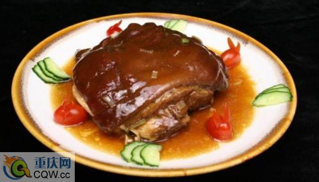 據棠城公園旁邊的東坡橋文化大酒樓廚師楊永彬介紹,傳說,蘇東坡曾到過永川,開發的東坡醬香肘主料是豬肘子、去骨。配料主要是鹵料。盛在盤中以黃瓜片鑲邊,西蘭花點綴,色香味美。其特點主要在于每份醬香肘有3碟不同口味的作料:一碟醋海椒,一碟甜醬,一碟干海椒面,可滿足不同口味人群的需求。