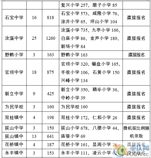 2019年初中一年級招生對象為2019年小學畢業學生和具有相應學業水平、年齡在16周歲以下的小學往屆畢業生。按“優化教育資源配置、相對集中和教育行政部門指定區域相結合”的原則,全部免試入讀初中一年級,同一鄉鎮(街道)內有2所及以上中學且校際間相隔較近的,仍采用“微機隨機錄取”的辦法分配生源。所在鄉鎮沒有辦中學的到教育主管部門指定的中學就讀。順溪小學和甘井小學招生區域內本地戶籍畢業學生,直接就讀甘井中學,其他非本地戶籍畢業學生同城區其他學校畢業學生一同參加微機隨機抽錄,確定初中就讀學校。2.招生計劃、范圍及辦法