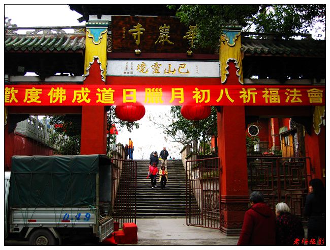 華巖寺與華巖風景區是以紅墻為界,紅墻內為華巖寺,紅墻外為風景區。華巖寺歷史悠久,傳說始建于唐宋,清康熙及道光、同治年間,均相繼擴建。據志書記載,明清兩代均有重大修復。華巖寺巖高百丈,形狀像笏,寺內外松竹修茂,十分幽邃。華巖寺分大寺、小寺。大寺殿堂建筑系傳統庭園式磚木結構建筑群,分為前、中、后三殿堂,即大雄寶殿、圣可祖師堂和觀音堂。寺左側為接引殿。大雄寶殿內的十六尊者木浮雕,為各寺院所少見。寺內還珍藏有印度玉佛及銅、玉、石、木、泥雕像多尊及大金塔模型等。華巖寺屬佛教禪宗,接嗣于四川梁平縣雙桂堂破山大師,傳臨濟宗三十二世法近回百年經六十四屆支持,曾付法至成都、內江、滬州、樂山、巴縣以及北京華巖寺等,故《巴縣志》有“華巖寺宗支流衍天下”的記載。華巖寺名聞遐邇,歷代顯要名士相繼造訪,留下眾多的墨寶詩篇,海內外的信眾游人亦慕名而至,參觀了寺內保持的珍貴文物經藏,莫不嘆為觀止。重慶佛學院亦設于華巖寺內,供佛門弟子虔心參學,據說還頒發大學文憑。每年臘月初八,華巖寺都要舉辦“歡度佛成道日臘月初八祈福法會”,而且要支大鍋熬臘八粥。這天,市民們會蜂擁華巖寺喝粥。據報載,今年臘月初八,有二萬余人去華巖寺喝粥,喝掉大米三千公斤。
