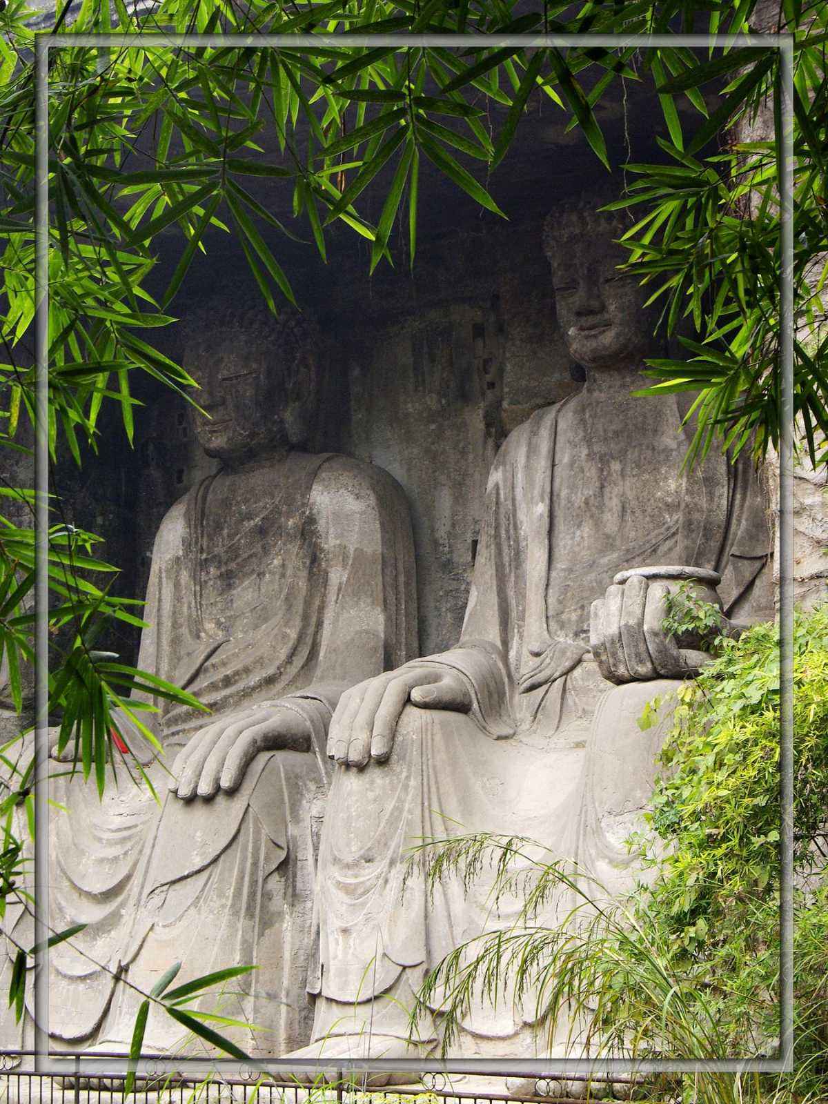 寶頂山石刻還有一些有趣的現象,釋迦牟尼和太上老君、孔子共坐一龕,傳說中的閻羅王,雷公電母、千里眼、順風耳的造像也混于其中。充分顯示了當時社會“儒、道、佛”三教相互融合的背景。寶頂山石窟最著名的千手千眼觀音造型由于正在修繕之中,無法得見全貌,成為此行中的唯一遺憾。