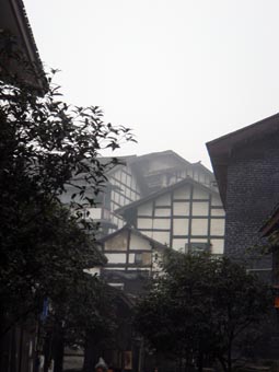 出門晚了,上午的時間就更短,原路返回渝中區(qū),第三站是洪崖洞,就是嘉陵江南岸的江邊,據說原來此處多吊腳樓,近年整體改造了,逐漸成為重慶的重要旅游區(qū)域。雖然不是真正的古跡,但好一大片仿舊的樓閣勾連在一起,足以形成一個小氣候,穿行其間真的有恍如隔世之感,可惜只是上四樓吃了一頓火鍋。邊吃火鍋,邊和小薛聊重慶,聽他說鄰居有一位書法老師(真是福氣,現(xiàn)在的都市里還有幾個能“寫”字的人),便讓兒子跟著學,從沒上學就開始,想讓淘氣的兒子能安靜地坐下來,雖說總是弄得到處是墨跡,但現(xiàn)在小家伙已經能夠像模像樣地寫字了,還被老師帶著四處去表演,言談中透出父親的驕傲。吃罷火鍋,我千恩萬謝地辭別了小薛(還是習慣一個人玩),然后直上十一樓,便是滄白路了,洪崖洞只要留待下次再細細地游了。