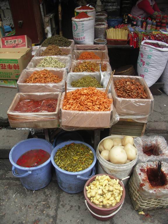 店鋪有經營小飯館的、賣菜的、茶社的,雜貨的、傳統手工藝的、衣飾的、理發的、租售碟片的、還有游戲機房,可謂五花八門,與日常生活有關的都齊全了。但無一例外的是,經營的檔次都是最低的。每個鋪面的開間只有三、四米,而臺階寬約五、六米,密集的店鋪令人應接不暇。