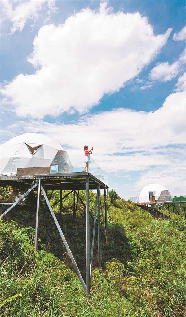 就如那名叫“清風(fēng)場”的鄉(xiāng)建田園,“別了江湖,我要回我的清風(fēng)場去”,青磚黛瓦的平房小院和綠植掩映的村落街巷構(gòu)筑成了這方別有洞天的天地,梯田插秧、荷鋤播種、山野垂釣……所有的回歸都是理所當(dāng)然。而在九頤生態(tài)度假區(qū)的“橫山一舍”民宿里,360度的玻璃房渾然天成,置身其中仿佛與周圍的山水融為一體,看日起月落、觀星星云海,不禁想起兒時(shí)院壩里納涼的場景。