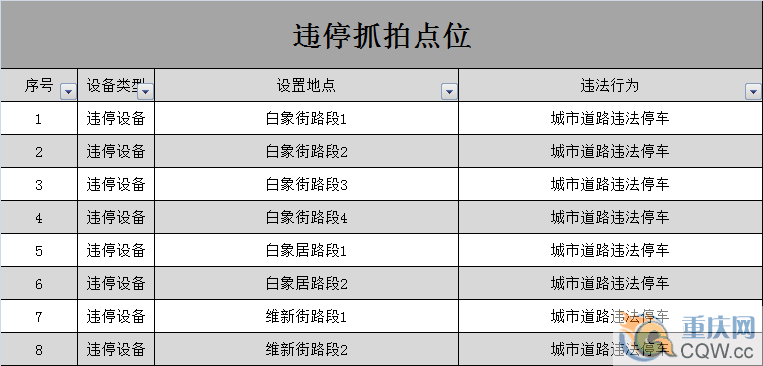 渝中交巡警消息,為進一步提升道路交通管理水平,提升道路通行能力、規范道路交通秩序,根據公安部《道路交通安全違法行為處理程序規定》第十六條第二款規定,現將轄區內固定式交通違法檢測設備地點予以公示。