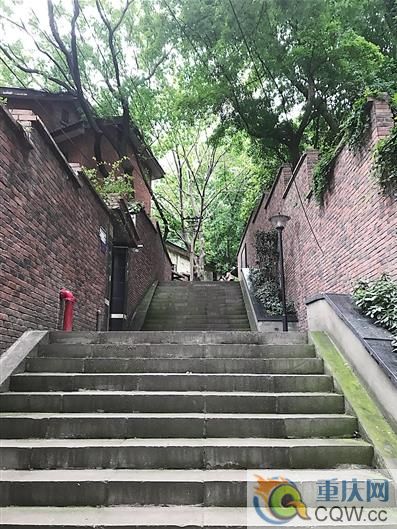 山城第八步道不足千米,但是步道打通了去大禮堂、棗子嵐埡、兒童醫院的便捷通道。走完山城第八步道,經過一段市政道路便進入文化宮巷。文化宮巷的整體風貌和山城第八步道一致,該步道起于中山二路兒童醫院門診部,止于學田灣。和山城第八步道部分穿過居民區相比,文化宮巷更袖珍,更緊致,步道兩側都是紅色高墻,粗壯的黃葛樹從兩側墻根生長出來,初夏時節,嫩綠的樹葉讓人心曠神怡。
